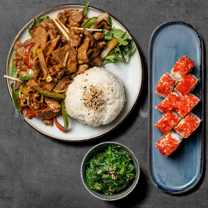 tangsalat. Krydret oksekød med ris og spidskommen . Alaska. M.chilimayo