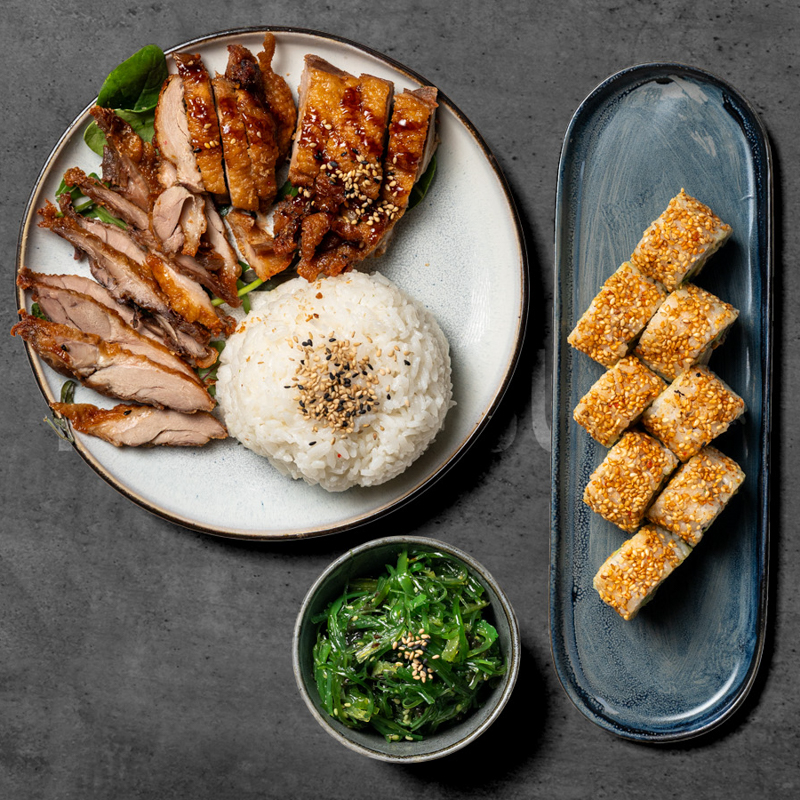 tangsalat. Tempura and bryst med ris. ceispy Ebi. M. hjemmelavet chilisauce