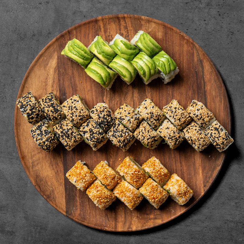 8 stk. Crispy Ebi Roll, 8 stk. Crispy Kylling Roll, 8 stk. Crispy Kakiyaki Roll, 8 srk. Green Dragon