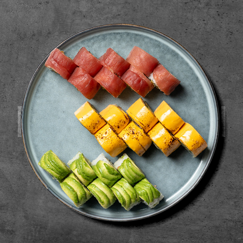 Toppede ruller: 8 stk. red Dragon, 8 stk. Green Dragon, 8 stk. Yellow Dragon