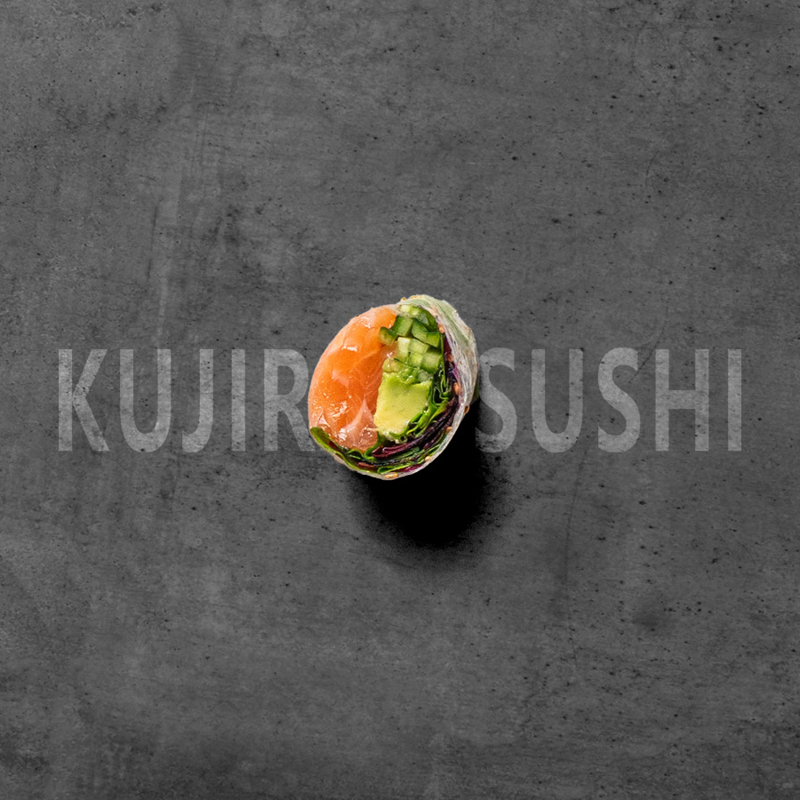 Laks, salat, asparges, avocado, agurk og flødeost med goma dressing