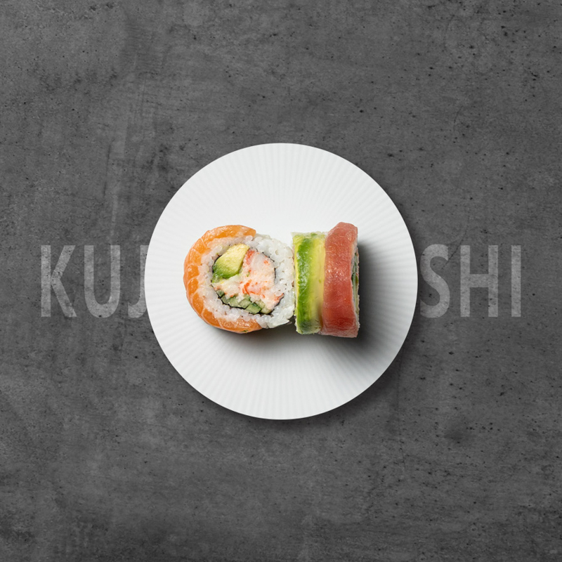 Surimi, avocado, agurk. Toppet med laks, tun, rejer og avocado